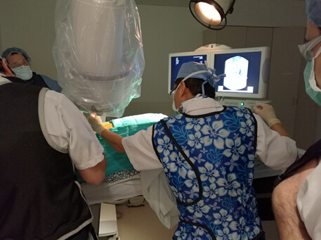这里医生的敬业精神令我感动。疼痛科大部分手术都是在射线下完成的,每个操作都要踩线数十次,放射次数频繁。虽然身着铅衣、护脖套和护目镜,但是一天下来医生、护士和C型臂技师还是会接受到很多辐射,然而我从未听到任何抱怨。为了达到佳手术位置,他们宁可不断踩线定位也绝不含糊。铅衣厚重,常常是一台手术下来一身汗湿。中午大家也都继续工作,吃饭时间大约10至15分钟,没有任何休息,有些医生为了使病人尽快得到医治甚至免去午餐。每位医护人员在工作中都按照流程认真执行,比如术前患者核对,通常是护士主导,每位医生都会站到患者身旁仔细核对每个内容。