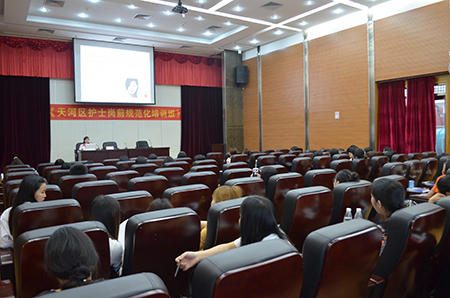 4月26日,(中新合资)广州现代医院护理部主任何亮琼应天河区卫计局邀请开展护士岗前服务礼仪培训。本次培训主要讲述日常护理工作中应该注意的服务礼仪,并以良好的礼仪状态给患者提供温馨舒适的服务。参加培训的是来自天河区各医院新上岗的护士,共计90余人。
