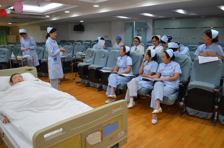 近期,(中新合资)广州现代医院分批组织全院5年以下工作经验的护士进行月度规范性操作考核。截至考核结束,除了两名护士因特殊原因未参加考核以外,其他参加考核的护士通过率为百分百。