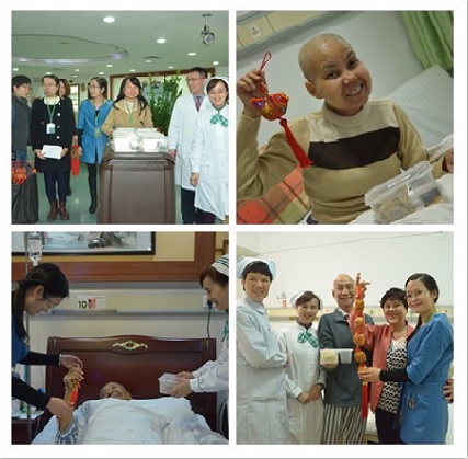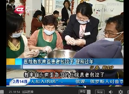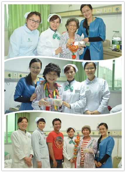同时送上的还有一串串“福袋”、“苹果”、“辣椒”等中国红和新春的祝福。患者们捧着热乎乎的饺子和中国红,也非常激动和高兴,有的还用中文对医院致以感谢和祝福。其实,在广州现代医院,这般喜乐温馨的画面并不难见。2014年下半年以来,医院以肿瘤病友俱乐部为平台,为患者举办的大大小小各类活动多达17场,平均每月2场,丰富了外籍癌症患者的娱乐生活,也展现了医院暖心的人文关怀服务。