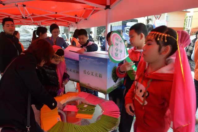 记者观察到,参加爱心助学活动的还有不少学生,他们身穿爱心背心,举着义卖的爱心牌子,向街坊们宣传爱心义卖,来自广州现代医院企划部的周小萍捐出2000本笔记本和若干个洋娃娃进行义卖,“我今天还专门把儿子带来了,这个活动十分有意义,希望他能懂得奉献爱,懂得身体力行去关爱他人,奉献自己的爱心。”周小萍称,虽然每本爱心笔记本定价1元并不多,但能够帮助到需要帮助的学生,心里十分高兴。
