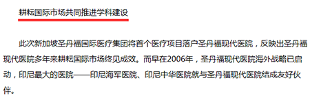 此次新加坡圣丹福国际医疗集团将首个医疗项目落户广州现代医院,反映出广州现代医院多年来耕耘国际市场终见成效。而早在2006年,广州现代医院海外战略已启动,印尼大的医院——印尼海军医院、印尼中华医院就与广州现代医院结成友好伙伴。