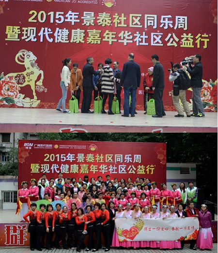2月4日~2月5日,(中新合资)广州现代医院2015年度系列邻里活动第二站“健康嘉年华社区公益行”来到景泰社区,进行了为期两天的社区同乐活动。来自社区的多个艺术团为大家带来了精彩的表演,免费医疗服务、民俗展、趣味游戏……有趣吸睛的文化活动让景泰街群众广场人气爆棚,笑声笑语不断。