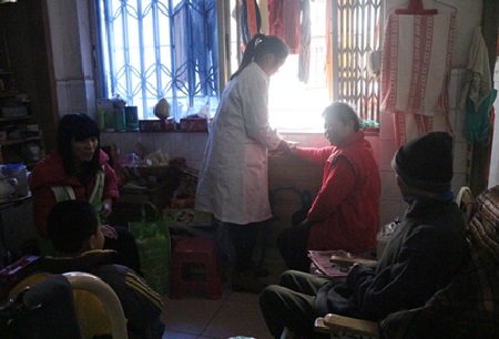 走进赖叔家中,一股异味扑鼻而来。赖叔的老伴早逝,留下现今60岁的智障儿子与赖叔相依为命。赖叔年老体弱,自身已经难以料理,尚且有不能自理的智障儿子需要照顾,生活的艰难程度可想而知。所幸,他们没有被我们所遗忘。在这里,我们帮他们简单整理房间,送上了慰问品,并为他们做了免费义诊。“你们费心了!我知道还有比我们更困难的,你们要多去看看他们!”赖叔的话让我们不由潸然,虽然身处困境,但他的大爱并没有消减。