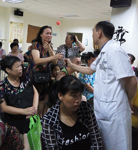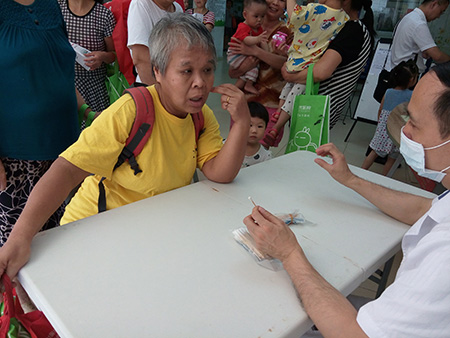 另外,为了普及牙病防治知识,帮助广大居民了解自身的口腔健康状况,增强口腔保健意识,并及时作出行之有效的口腔保健计划和干预措施。周斌主任讲座结束后,在沙东街道开展免费口腔义诊活动,众多社区居民前来诊治。