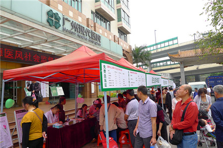 在活动现场,广州现代医院的妇科、内儿科、外科、乳腺外科、中医科等科室的医生们热情地为市民进行免费的健康咨询、血压、血糖测量等服务,帮助居民做到疾病的“早发现、早预防、早治疗”。