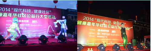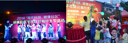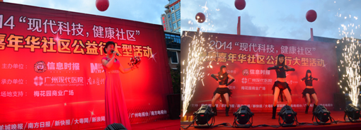 7月12日,由信息时报、新华网联合主办,街道家庭综合服务中心、社区居委会联合承办,(中新合资)广州现代医院支持的2014“现代科技 健康社区” 健康嘉年华社区公益行大型活动在梅花园商业广场欢乐开幕。500多位周边社区居民逐一体验了多科联合义诊、健康知识宣教、健康游戏等健康公益项目,并兴致勃勃地观看了精彩的文艺演出。