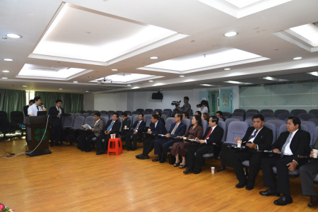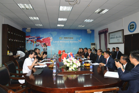 上午8点20分,代表团抵达广州现代医院。在院领导的陪同下,代表团于医院行政楼2楼多功能会议室观看广州现代医院品牌形象片,同时与广州现代医院展开双方会谈。会上,院长王怀忠代表广州现代医院向柬埔寨卫生部代表团表示热烈欢迎,并重点介绍了广州现代医院及驻柬埔寨金边办事处肿瘤事业发展的相关情况。