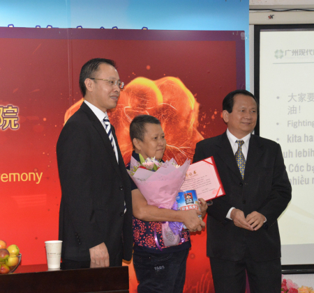 下午3点30分,柬埔寨卫生部代表团还参与了广州现代医院同期举办的 “2014年度6月份广州现代医院抗癌勇士颁奖仪式”活动。
