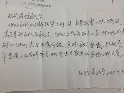 另一封是在信箱里收到的,几位老病号在信中表扬客服梁碧波与收费处曾琼英,感谢她们的耐心、专业与敬业。