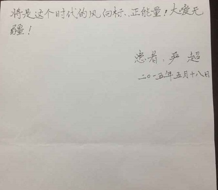 急诊患者严超在公交车上,因司机的操作不当,致使其头部受伤,当时(中新合资)广州现代医院保障部保安唐冬阳在场,唐先生以超人的速度将严超背到急诊科治疗,同时在岗的杜政赞也及时给予帮助,患者本人非常感动,患者称,人间自有真情在,我为能够认识医院有爱心的人们感到荣幸,感谢帮助他的人,感谢综合病区所有值班的医护人员,为广州现代医院所有工作人员点赞!