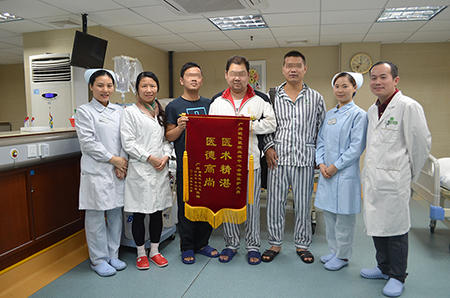 2016年1月4日,患者林女士再度回院,给妇科林三明主任和内科王炳林主任及八楼病区全体医护人员赠送锦旗,以感谢治疗期间医生护士对其悉心照顾。