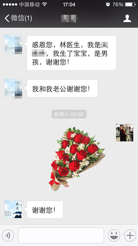 能怀上一个健康的宝宝是大部分女性的期望,广州现代医院妇科林三明主任妙手回春,多次为由于输卵管阻塞等原因导致不能生育的女性做手术。患者术后都能成功拥有属于自己的孩子,也均有给林主任报喜并表示感谢。