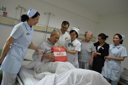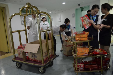 据了解,每年的中秋节、端午节等家人团圆的节日,广州现代医院都会为住院的患者送上节日祝福,与患者共同度过一个快乐的节日。广州现代医院副院长陈兵说,这些住院患者选择广州现代医院,是对我们的信任,特别是许多外籍患者,不远千里来到广州,将自己托付给了现代。我们要对得起这一份信任,要尽大努力为患者提供好的医疗服务,并且从非医疗方面给予患者鼓励,为患者提供更舒适安心的治疗环境,为患者解病痛之苦,帮助患者早日恢复。
