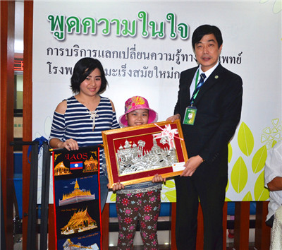 许多患者纷纷表达了对此次活动的满意,更有患者表示没想到总经理也会在百忙中抽出时间来参加。通过此次活动,他们深刻地感受到医院对患者的尊重,以及医院这种“以人为本”的服务理念。他们确信,基于医院的尽心尽责,他们所提出的问题很快就会得到落实。值得一提的是,为了感谢广州现代医院所有医护人员的悉心照顾,在活动进行到一半时,来自老挝的小患者天达和妈妈更是向医院赠送了老挝的传统纪念品——画幅和锦布。