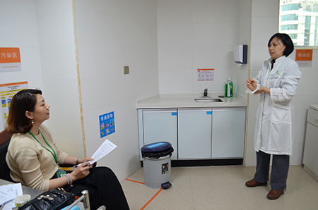 经过3月份的手卫生操作培训以及日常工作中对手卫生操作的规范化要求,广州现代医院的员工包括临床人员以及后勤人员均对手卫生操作有较为深入的了解。“内、外、夹、弓、大、立、腕”七个字是手卫生操作的七个基本步骤,而且这个基本步骤在医院每一个洗手台都有张贴,时刻提醒员工注意按照国际医疗标准将手卫生操作落实到位。另外,手卫生的五个时刻:1、接触病人前;2、清洁/无菌操作前;3、接触病人血液体液后;4、接触病人后;5、接触病人环境物品后。每一位员工都谨记于心。