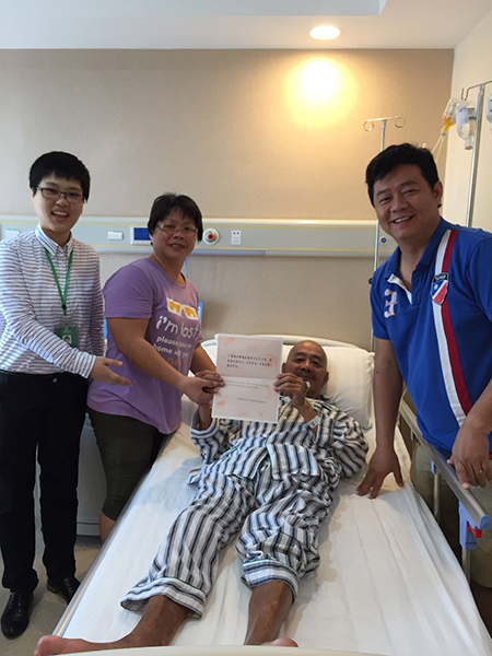 “我的孩子都远在泰国,本以为这个父亲节只能自己在医院度过了,没想到广州现代医院这么用心,还特意为我们送上节日祝福,真的很感动,谢谢你们!”收到精美的祝福礼物,来自泰国的肿瘤患者金先生激动地道谢。