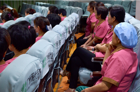 6月21日,广州现代医院组织2016年度全院保洁员院感知识培训,医院感控科何凤玉主任担任主讲师,全院负责保洁工作的员工参加培训。