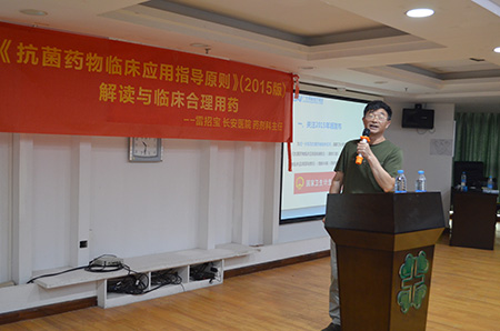 培训中,雷招宝主任还讲解了抗菌药物治疗性应用的基本原则;预防性应用的基本原则;特殊病理、生理状况患者中应用的基本原则;时间依赖型抗菌药物等几个与抗菌药物相关的名词等,让临床医护人员对于抗菌药物的应用有了更加深刻的认知。雷招宝主任强调,在制定治疗方案时,对抗菌药物的使用要考虑品种选择、给药剂量、给药途径等三个条件。“在品种选择方面,安全是第一,要考虑药物的有效性、针对性、经济性等,要在国家基本药物目录中选。”