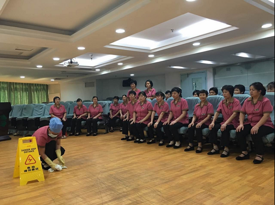 据了解,广州现代医院于6月27日和7月7日分别进行了本年度的全院保洁员服务礼仪理论以及实操培训,本次考核主要是对之前所培训内容的真实演示。