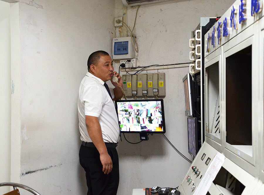 下午3点,演练开始,两名护士走进电梯,并按下了8楼。几秒钟后,电梯“忽然”出现故障暂停,她们匆忙按下紧急呼救按钮。同一时间,警报电话在监控值班室响起,保安队的刘向军队长接听了电话,通过初步交谈了解被困人员的情况,并安抚她们要镇定等待救援。