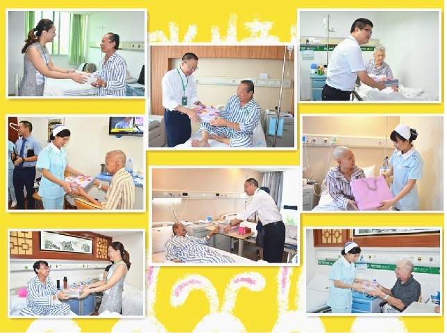 9月15日为中国传统的中秋佳节,为让住院的外籍患者感受浓厚的节日气氛,吃上香甜的月饼。上午十点,广州现代医院院长王怀忠、医务部主任林太杰、行政部主任杨金娜、护理部主任何亮琼,以及医院工作人员一行,早早带着漂亮的月饼礼盒,出发各个肿瘤病区,把最诚挚的节日祝福送至患者手中。
