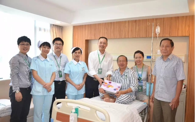 医院领导与患者吴先生合影
