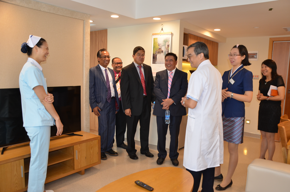 圣丹福广州现代医院总经理涂孝明、副院长陈兵等医院高层领导热情地招待了参观团。总经理涂孝明上台致欢迎辞,他介绍道,圣丹福广州现代医院一直秉着“医无国界”的医疗理念,先后在印度尼西亚、菲律宾、泰国、越南、马来西亚、柬埔寨等东南亚国家了设立了十多个办事处,为各国当地民众提供咨询与服务,接纳了来自世界各国的上万名肿瘤患者。他说道:“癌症仍然是世界面临的难题,既需要医患双方的密切配合,更需要全社会的力量一起携手。让我们同行,传递肿瘤治疗技术,帮助患者树立抗击癌症的信心与勇气,为更多的癌症患者重获新生,重拾健康。”