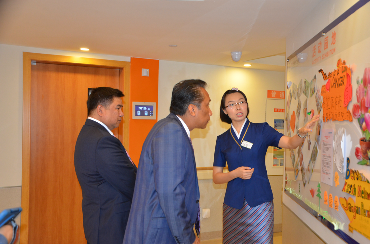 为了让参观团更直接全面了解圣丹福广州现代医院,副院长陈兵陪同参观团参观了医院的整体环境,包括商务酒店式新病区、病房,以及国际远程会诊中心等。据悉,圣丹福广州现代医院“现代国际远程会诊中心”成立于2016年,“中心”通过视频会诊等方式,为患者提供远程会诊诊疗服务,不管患者身在世界何处,都可以足不出户,享受到来自广州现代医院MDT专家团队的高端诊疗服务,甚至可以通过“中心”与世界各地名医生进行零距离交流。