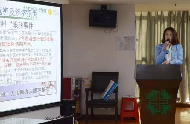 11月4日,广州现代医院组织《医院消毒隔离技术与职业暴露及防护》培训。培训由感控科何凤玉主任主讲,全院医护、护工、保洁员、保安等员工参加。