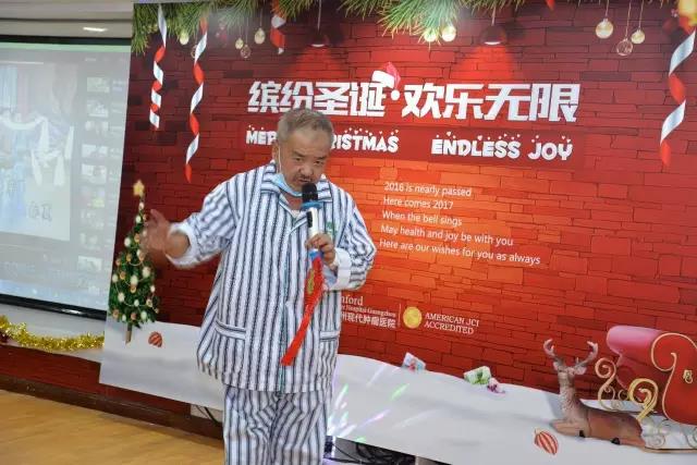 2016年12月24日下午,伴着窗外的绵绵细雨,“缤纷圣诞,欢乐无限”主题派对在广州现代肿瘤医院9楼会议室如火如荼地进行。正值平安夜来临之际,本次活动旨在为患者送去欢乐和祝福,祝愿所有患者战胜病魔,过上幸福美满的生活。也为患者及家属提供了分享抗癌经历和心得的平台,让所有来自异国他乡的患者在这里感受到无限的爱与关怀。