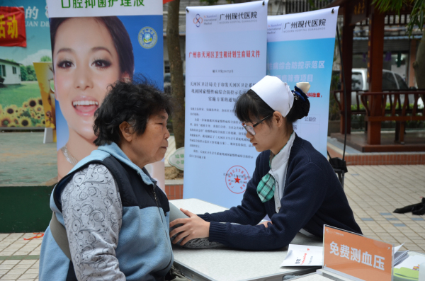 为响应国家“慢性病综合防控”计划,广州现代医院主办的健康社区大型义诊活动近日在沙东街道幸福广场开展。3月7日下午,天气比较阴沉,但并没有影响市民的参与热情,义诊活动有条不紊地进行着。