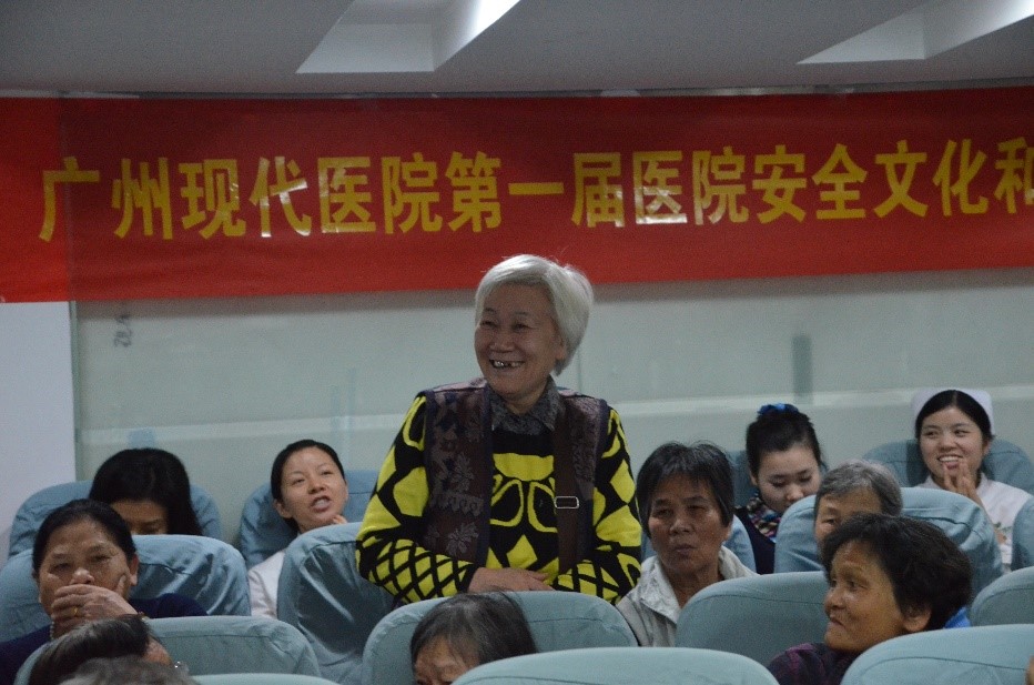 在伦理抢答环节中,现场一位来自沙东社区阿姨也积极参与其中,准确的回答出作为患者自己应该知道的权利和义务,这正体现了广州现代医院对医学伦理建设的宣传已深入人心。