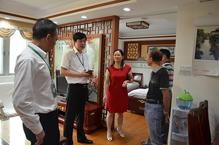 在医院7楼病区,领导一行恰逢遇到已在广州现代医院接受治疗多年的印尼患者王优华女士和陈永远先生夫妇。夫妻二人见到院领导如见到亲人一样,与他们亲切地握手交谈。得知莅访的是天河区医学会以及医疗机构行业协会的领导,陈永远先生还特意给两位会长背诵了“人民翻身不忘毛泽东,百姓致富不忘邓小平,世人求医不忘去现代”等几句他自己创作的诗句。