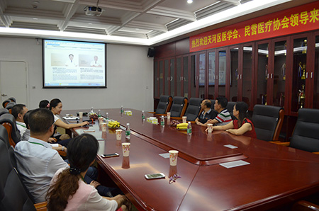 7月12日,广州市天河区医学会会长、天河区中医院副院长刘福英,以及天河区医疗机构行业协会会长、天河区人民医院副院长陈述金等领导一行莅临广州现代医院指导工作,医院林绍华总经理、王怀忠院长、陈兵副院长等院领导接待了莅访的领导代表。