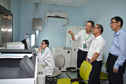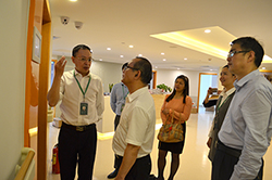 为了对广州现代医院的医疗建设以及医疗服务有更加深入的了解,王怀忠院长和医院其他领导陪同胡文主任一行参观了广州现代医院。广东药科大学领导对医院智能化病房以及防摔倒、个性化服务表示赞叹。胡文主任在了解了广州现代医院科室建设、科研特色后表示,广州现代医院很多医疗项目与广东药科大学的多学科发展有紧密联系,在广州现代医院建立教学基地是明智的选择,有利于共同推进教学、科研、人才培养。