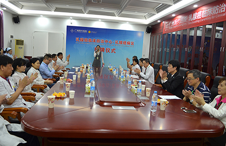 4月28日上午,(中新合资)广州现代医院“乳腺癌临床防治中心•乳腺癌病区”授牌仪式举行。博爱(中国)企业集团副总裁涂孝明,广州现代医院总经理林绍华、院长王怀忠、副院长陈兵,以及肿瘤科主任彭晓赤、戴文燕等相关医生出席了授牌仪式。