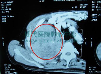 1月始患者出现发热,体温高到39℃,咳嗽、咯血加重,并出现呼吸困难。菲律宾权威医院医生行CT检查发现肿瘤增大,认为只有两个月的生命,已经失去治疗价值。此时患者全身疼痛加重,行动不便终日躺在床上,严重失眠,进食明显减少,体重由原来的120KG下降到不足80KG。