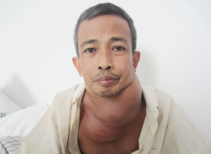 苏其祥多是印尼泗水人,他有一个圆满幸福的家庭,一个爱他的爱人和三个可爱的孩子。然而,2012年初,他的脖子就像营养过剩般,开始不断的肥大,这让原本幸福的家庭处于惶恐不安中。苏其祥多告诉我们,2012年3月,他的前颈部就出现了枣样大小肿块,但没有疼痛。而且每日中午他还感到身体发热,但可自行好转。因为对他生活没有太大影响,这些症状就被他忽略了。直到肿块逐渐增大,他才于2012年7月,到当地医院检查,终被确诊为霍奇金淋巴瘤。当地医生建议做化疗,但他担心化疗的副作用太大,于是拒绝了。后来,他选择口服草药治疗。然而效果却非常不好,肿块不仅没有缩小,还迅速增大了,脖子一度“肥胖”到难以转动。同时,他和家人也一直在寻找更好的治疗方法,经过多方打听,他们了解到广州现代医院拥有先进的微创技术,相比传统的放化疗,微创技术具有创伤小、毒副作用小、疗效快的优势。综合考虑之后,苏其祥多决定前往广州现代医院就医。