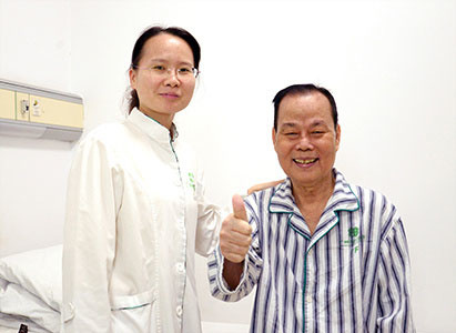 病情好转,黄育敬和林菁医生在一起开心合影